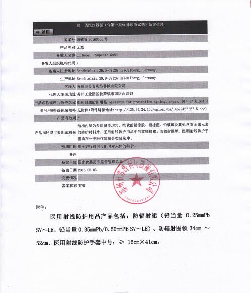 蘇州市蘇普利馬器械有限公司是專(zhuān)業(yè)從事醫(yī)用X射線防護(hù)系列用品、裝置、代理德國(guó)Dr.Goos-Suprema Gmbh.顧斯博士-蘇普利馬有限公司生產(chǎn)的原裝進(jìn)口鉛衣及醫(yī)用觀片燈的生產(chǎn)銷(xiāo)售企業(yè).生產(chǎn)的X射線防護(hù)圍裙均來(lái)自美國(guó)SHIELDING公司的最新型超薄型防護(hù)材料,,具有防護(hù)性能可靠、穿戴舒適、輕便柔軟、操作自如等諸多優(yōu)點(diǎn).產(chǎn)品均通過(guò)相關(guān)X射線檢測(cè)機(jī)構(gòu)的檢測(cè),達(dá)到產(chǎn)品標(biāo)準(zhǔn)的要求.X射線醫(yī)用膠片觀察燈。是采用全LFD燈光技術(shù)。具有重量輕,光源均勻,亮度高,無(wú)頻閃,不變型,使用壽命長(zhǎng)等特點(diǎn)。均取得了生產(chǎn)許可及醫(yī)查看更多>>